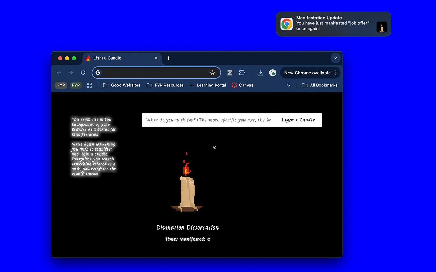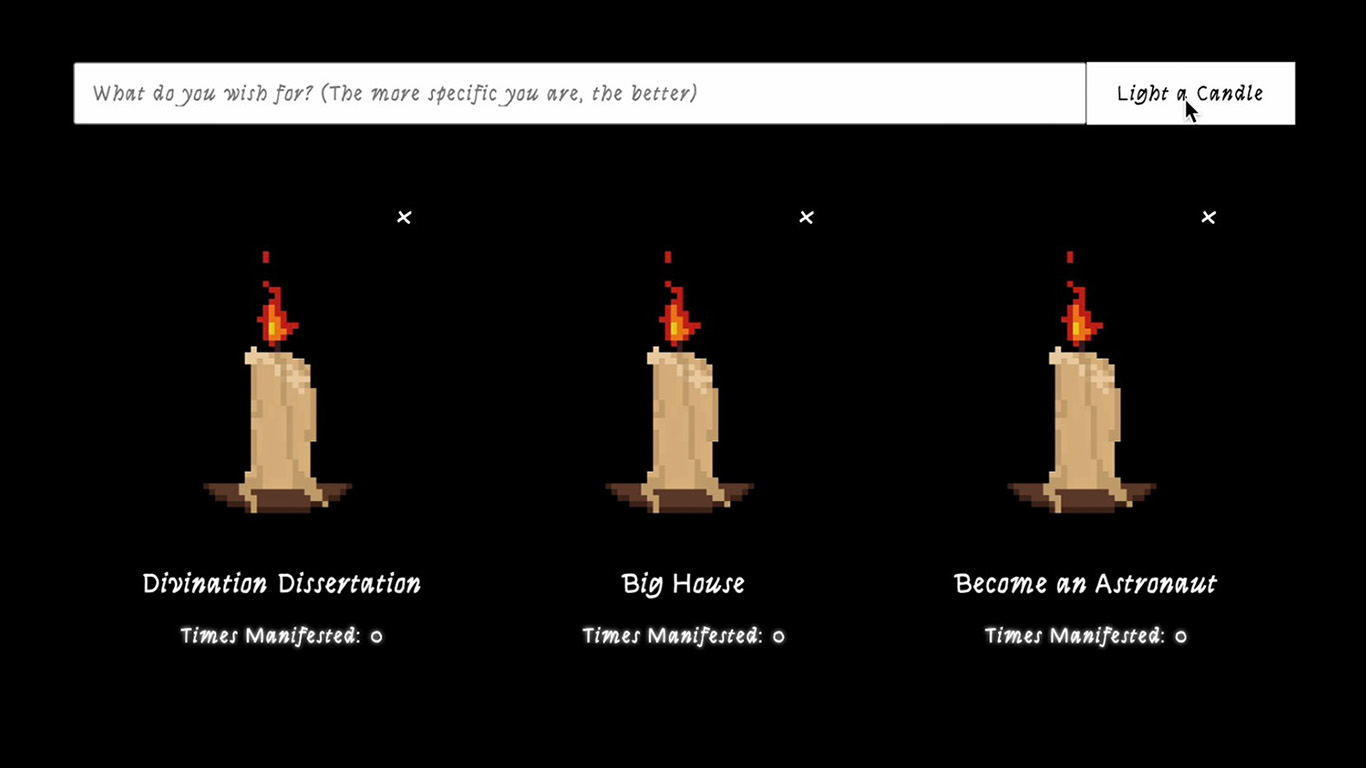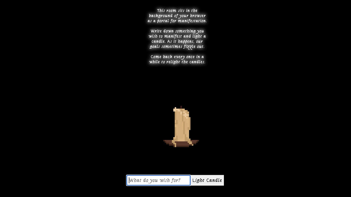 of the browser, the user accesses this space for manifestation and lights a metaphorical