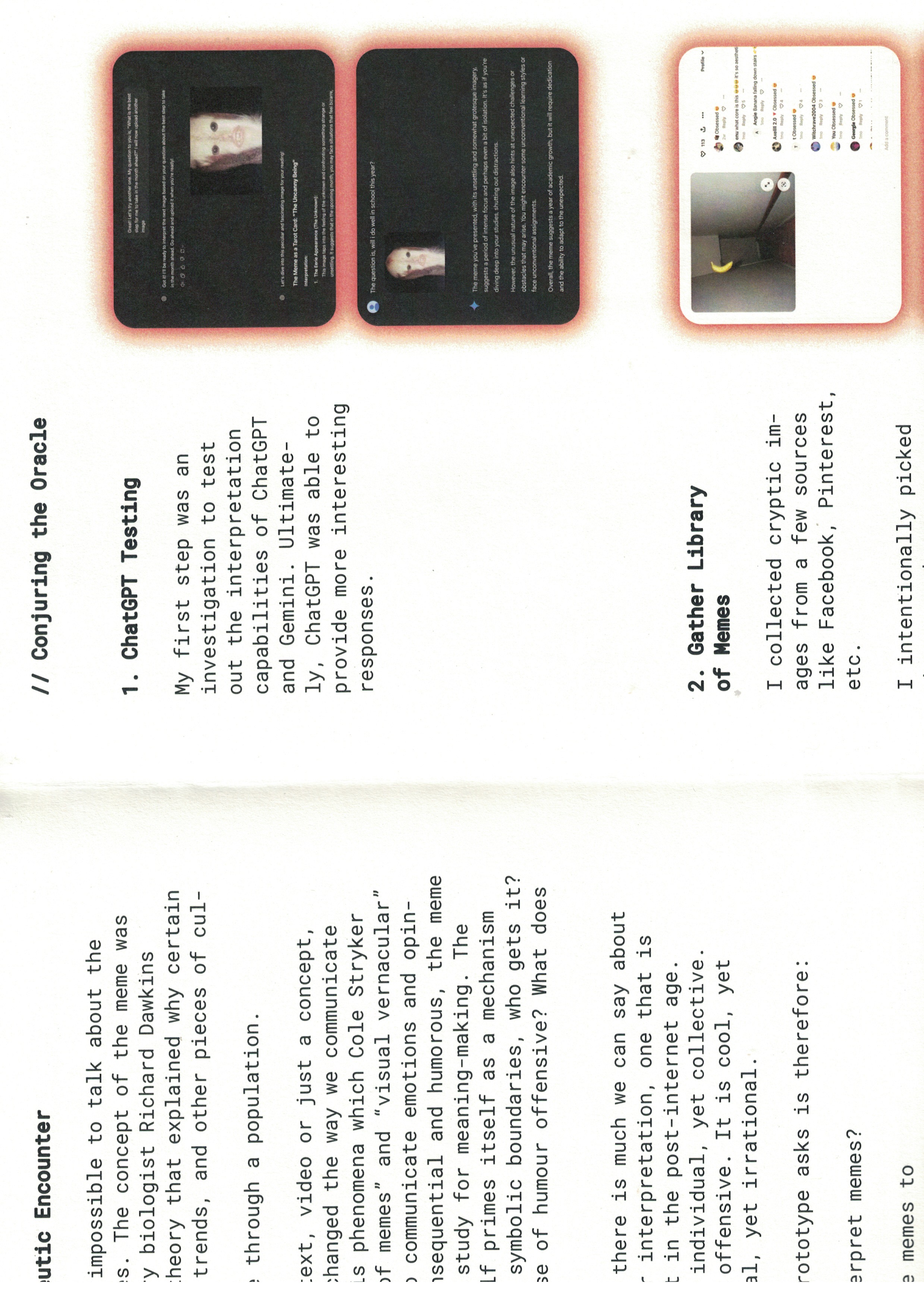 I next attempted to create a brand new divinatory process removed from existing cultural elements. Instead, the goal is to derive these elements purely from computational methods. This experiment therefore instrumentalises computer-generated imagery and machine learning for their ability to generate randomness.