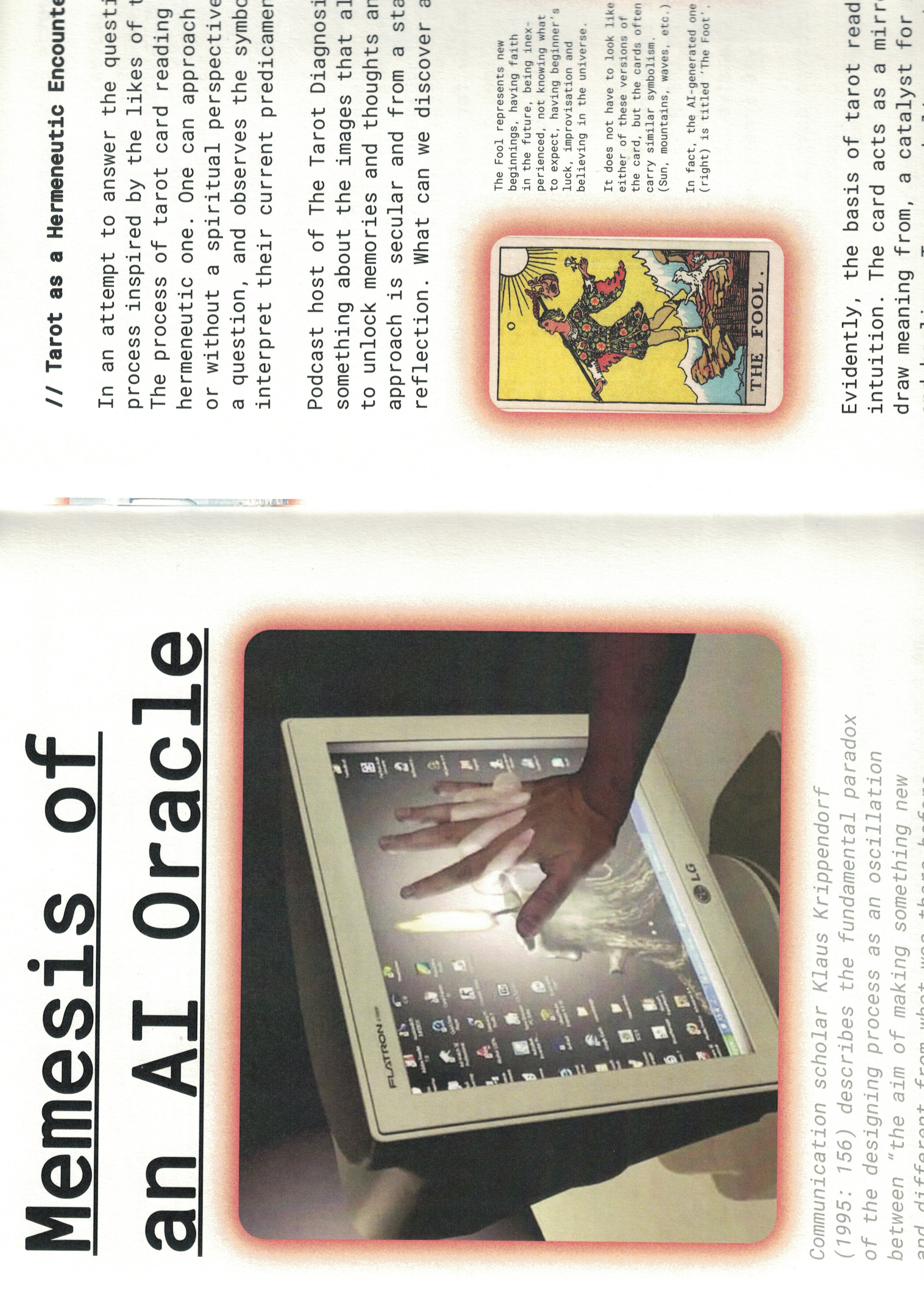 This last prototype investigates the role of divinatory impulses, intuition and
