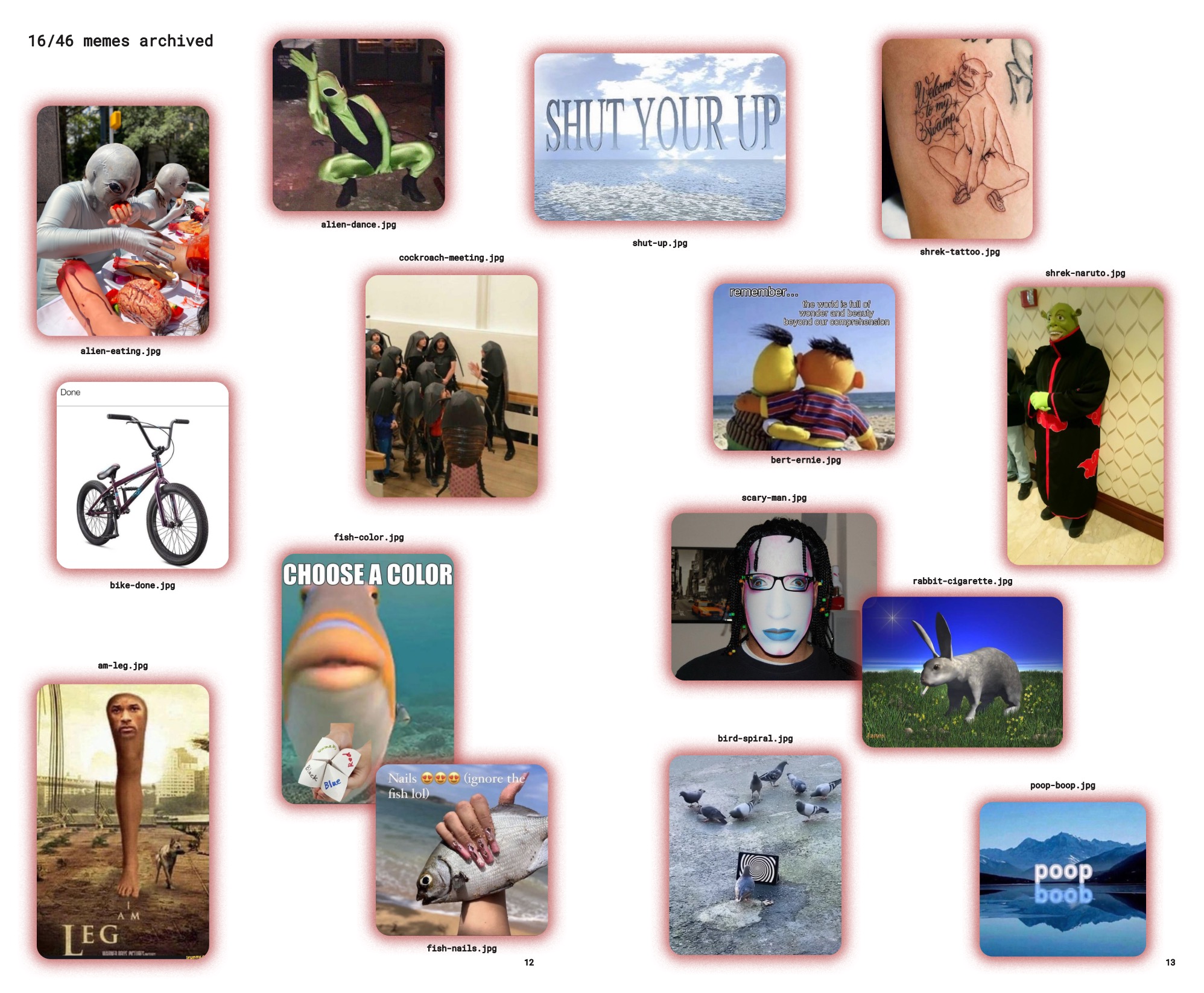 As cryptic and abstract as they may seem, these archival of memes probably means something different to every individual. Particularly the ones with... ineffable vibes.