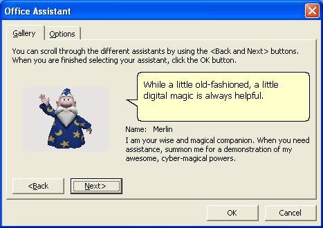 Merlin was a character used as a representation of a Microsoft agent in 2003, a step