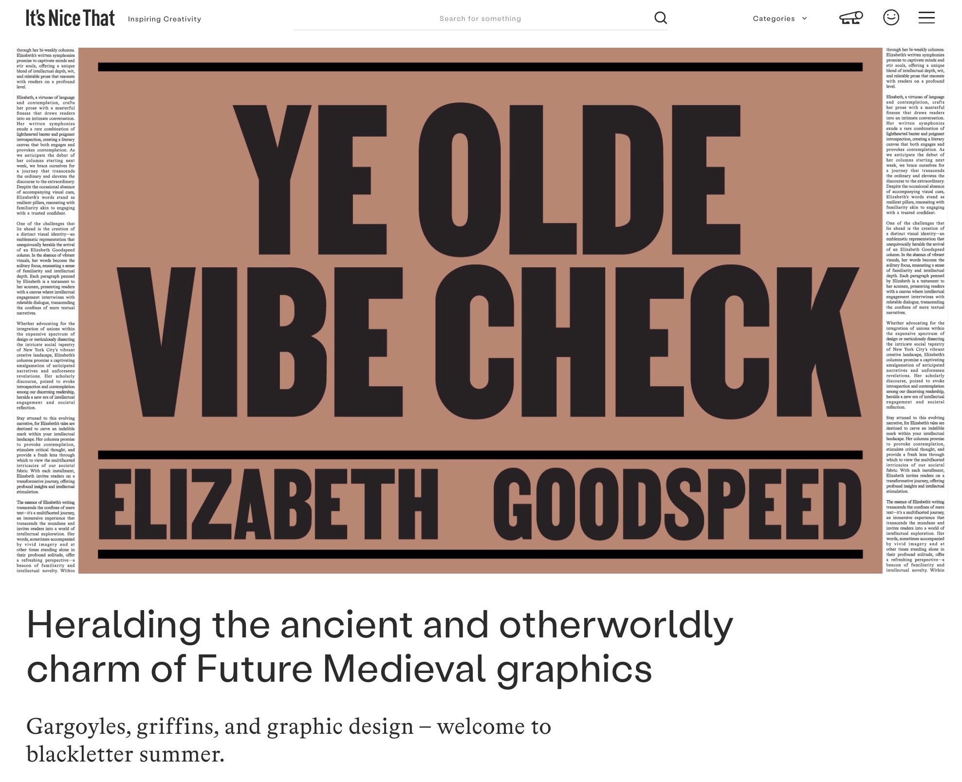I also found an article on It's Nice That called Heralding the ancient and otherworldly charm of Future Medieval graphics documenting a trend in which people find fascination in old world graphics.