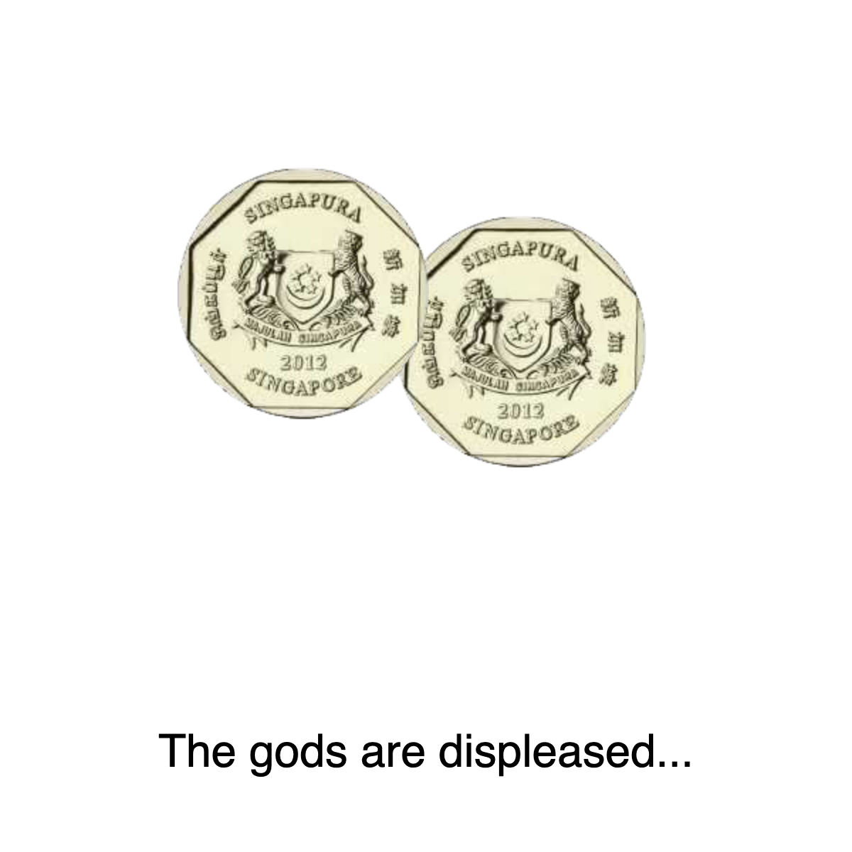 Nùjiǎo (怒筊, angry answer) also kūjiao (哭筊, crying answer) or méijiǎo (沒筊, no answer): Both blocks flat