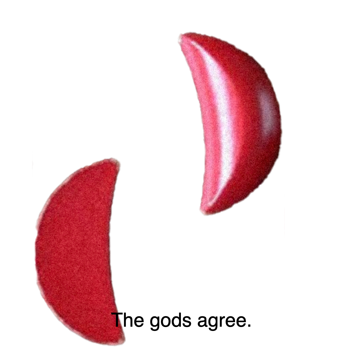 Xiàojiǎo (笑筊, laughing answer): Both blocks round facing floor have several interpretations; in any