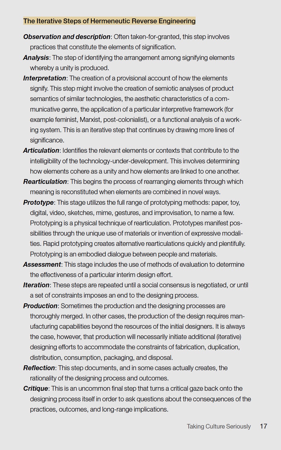 She then expands on Geertz's method with her introduction of hermeneutic reverse engineering.