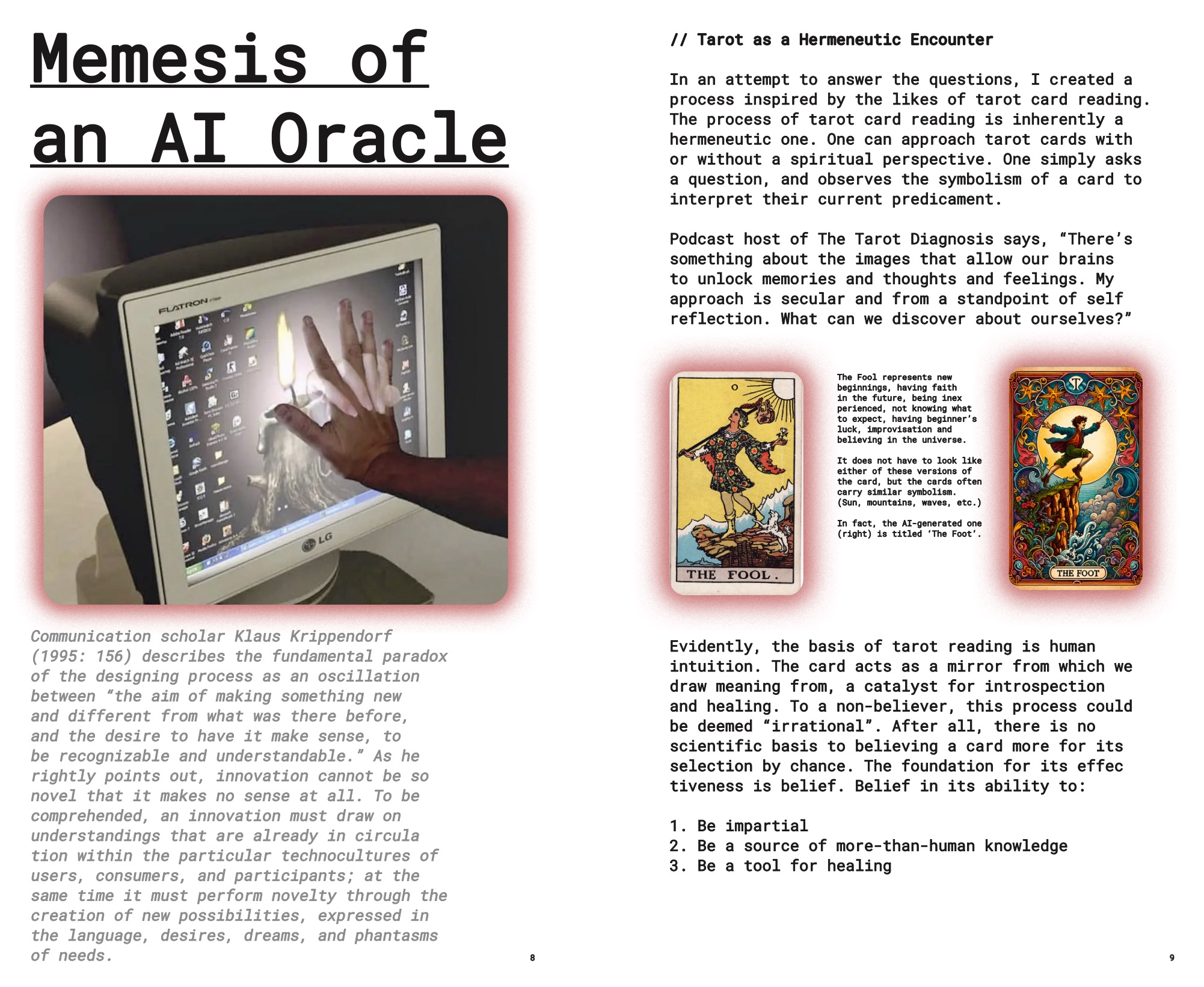tarot and the participant, but in a meta way. I wonder if it would be more effective for me to play up
