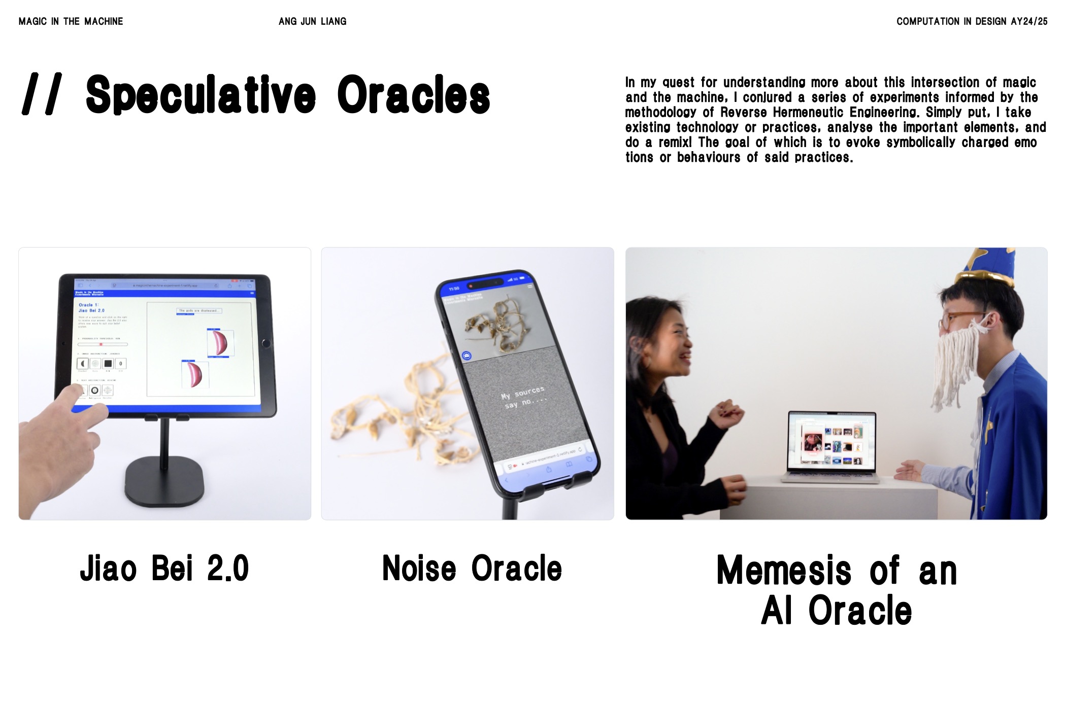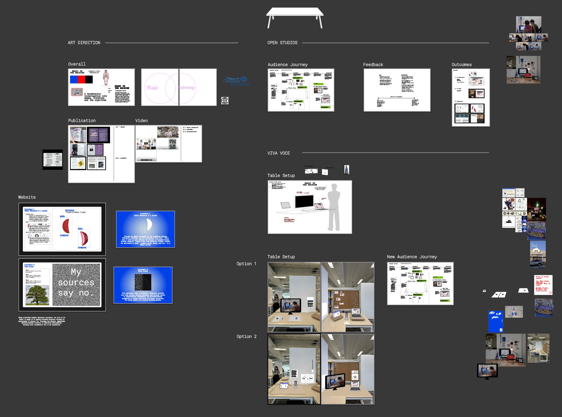 Last week at the discussion with Andreas, I thought it would be a good idea to focus my table on the meme oracle. But, after some deliberation and going back into my past processes, I decided it would only make the project whole if I presented all of them. So, I decided to string them together as a series of speculative oracles that I learnt from.