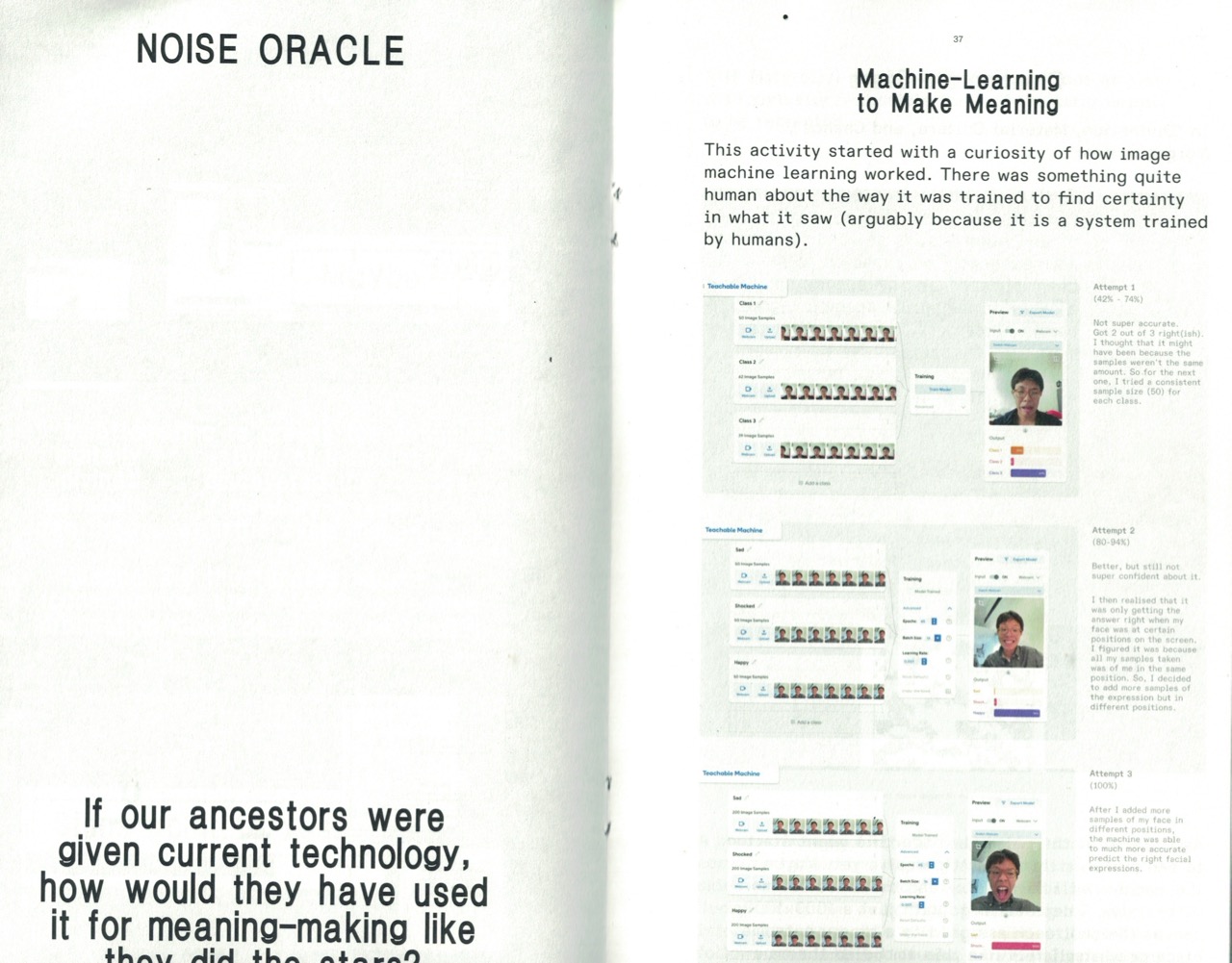 Instead of a dump of information in my book, I wanted to document and share what I've learnt through stories. So, I wrote some short essays covering topics like rituals, data server blessings, and AI Gods. The second half of the book covers the process of my speculative oracles.